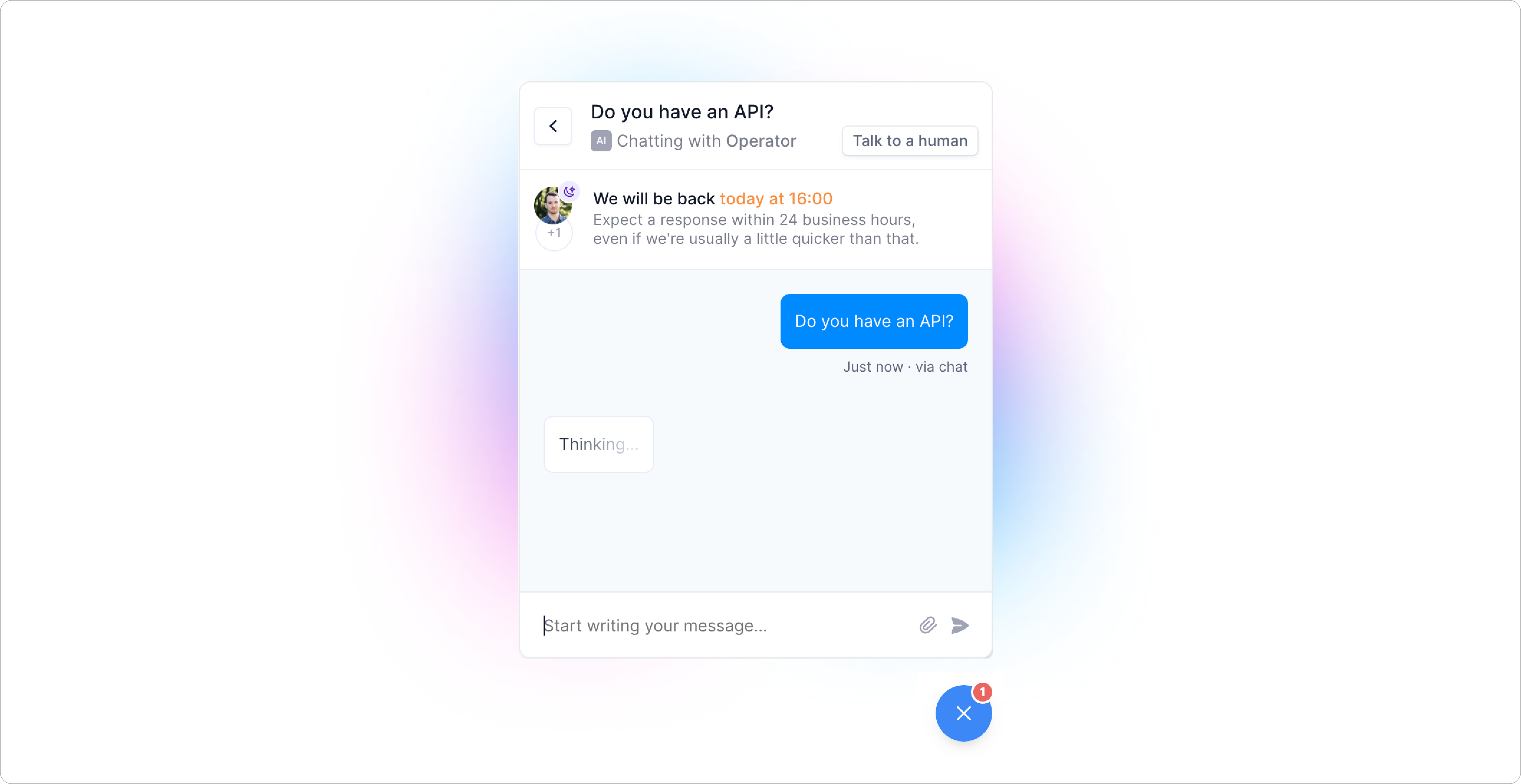 Once enabled, the AI chat agent responds to messages in your widget using your AI training: that includes your help center, past conversations, and internal docs. You can think of it as a polite, tireless teammate that knows your business inside out and replies instantly.
