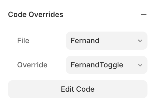 Once your overrides are ready, select any button in Framer, open the Code panel on the right, and choose one of the functions:
